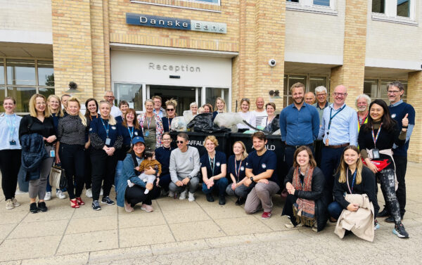 Så holdt Danske Bank den 12. september en ”Clean Up” aktion omkring deres arbejdsplads på Dalbergstrøget. Her deltog ca 50 der fik indsamlet 81 km skrald.